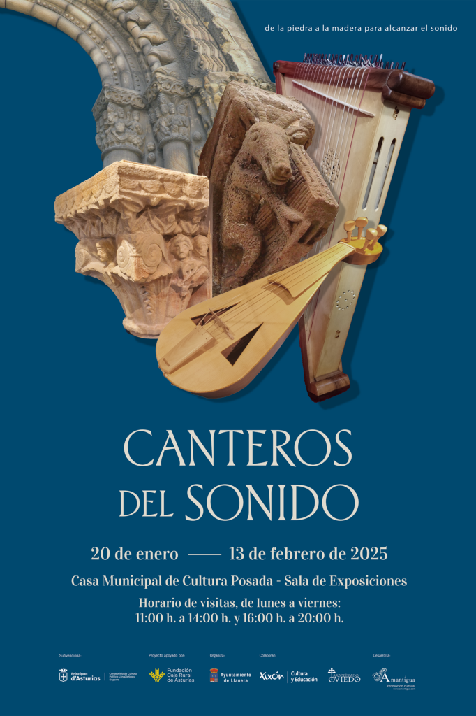 Exposición Casa Municipal de Cultura, Posada, Llanera. del 20 ene / 13 feb 2025. Horario de visitas, de lunes a viernes de 11:00 h. a 14:00 h. y 16:00 h. a 20:00 h. Podremos ver la Rota de Arlós (luthier: Carlos Gonzalez y el Cuerno de Ceares (Luthier: Abraham Cupeiro)